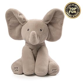 GUND is proud to present Flappy the Elephant — an adorable singing animated plush with two different play modes. Press the left foot to play an interactive game of peek-a-boo, and the right to hear the song 'Do Your Ears Hang Low' in a cute child’s voice. Ears move and flap during play. Surface-washable for easy cleaning. Appropriate for all ages.